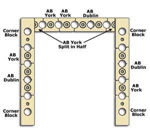 Once you have a level foundation, you can begin building the first course of your compost bin. Using the pattern in Layout 1, start with the corner block on the back wall. Each course will require an AB York or an AB Dublin block to be cut or split. Learn more about cutting and splitting blocks.